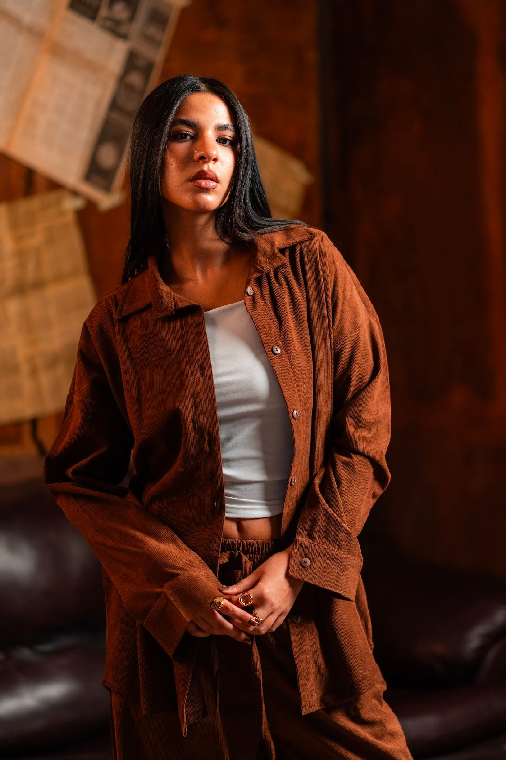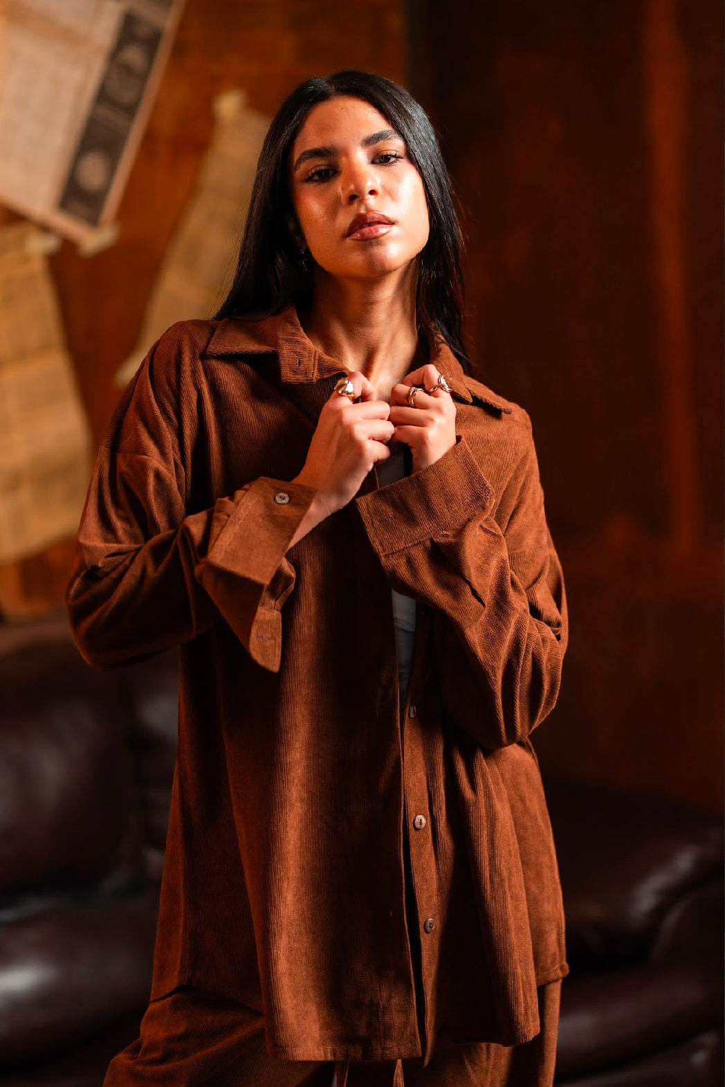 A statement in softness. The Velvet Stride Chemise is cut from soft striped velvet for an oversized unisex fit that redefines relaxed sophistication. Wear it solo or pair it with the matching pants for the full stride look.